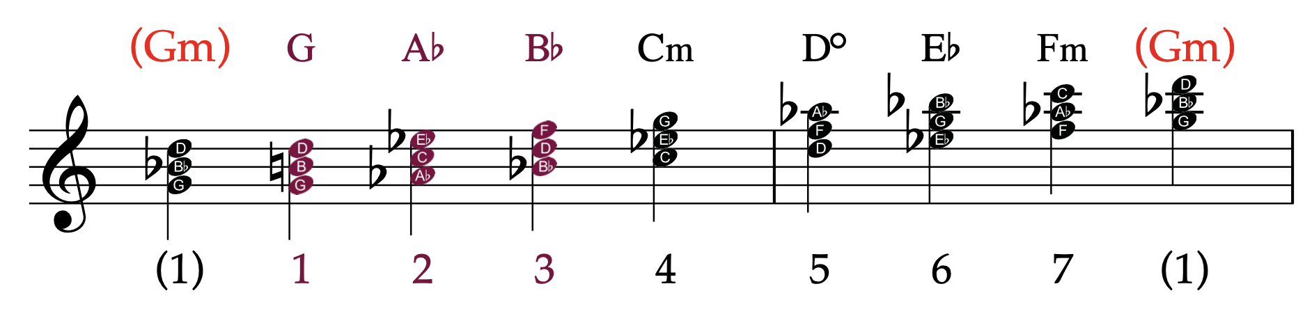 The phrygian collection starting on G. In the progression we are working with, the 1 chord is often made a major chord, instead of the minor chord that is naturally there.