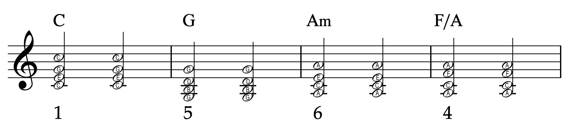 That will be enough to get us started looking at some real progressions. We’ll start with the progression that the Axis of Awesome video featured.